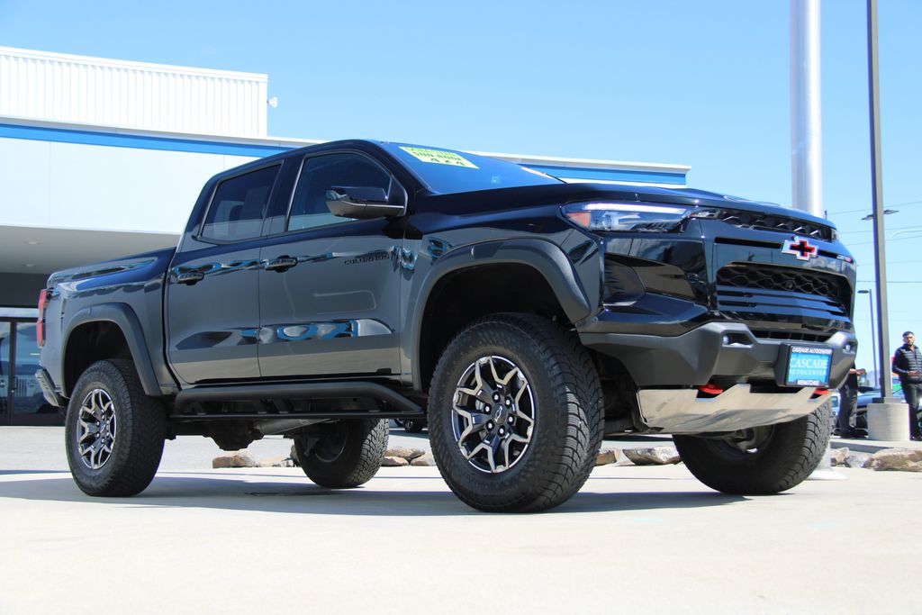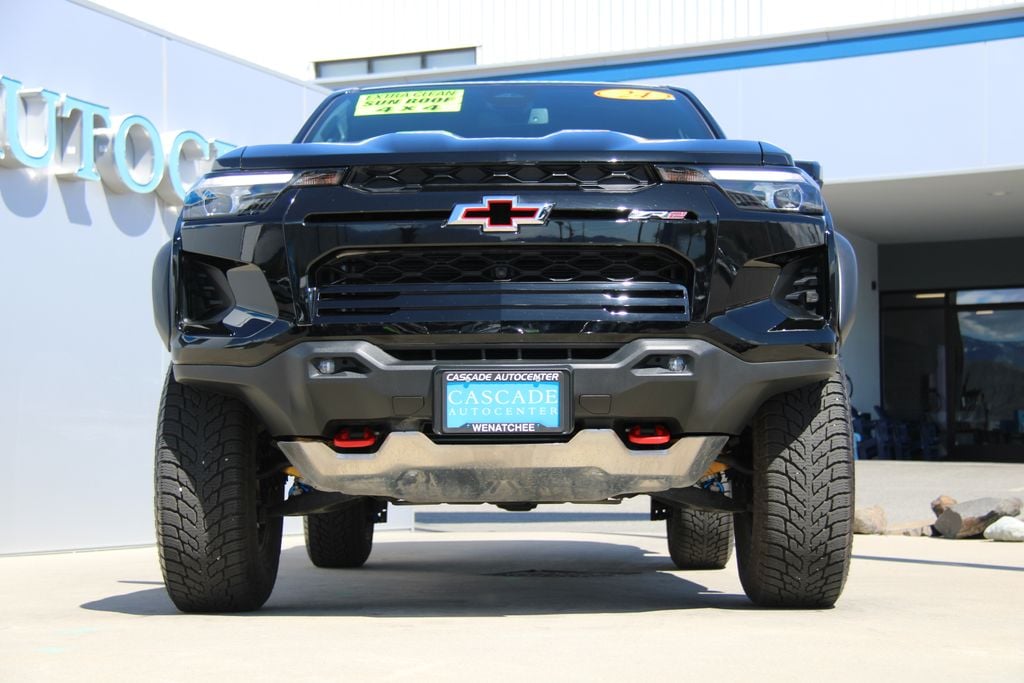 *One Owner*, Accident Free Carfax, Alloy Wheels, Audio Package, Backup Camera, Bi Xenon Headlamp Package, Bluetooth, Cargo Package, Climate Package, Heat Package, Heavy Duty Trailer Package, Light Package, Multimedia Package, Navigation System, Off Road Package, Performance Handling Package, Power Mirror Package, Power Package, Premium Audio Package, Premium Wheels, Rear Climate Package, Remote Start, Safety Package, Security Package, Sunroof/Moonroof, Technology Package, Colorado ZR2, 4D Crew Cab, 2.7L I4 Turbocharged DOHC 16V LEV3-ULEV50 310hp, 8-Speed Automatic, 4WD, Black, Jet Black/Artemis w/Cloth/Evotex Seat Trim, 3.42 Rear Axle Ratio, 4-Way Manual Passenger Seat Adjuster, 4-Wheel Disc Brakes, 6 Speakers, 6-Speaker Audio System Feature, 8-Way Power Driver Seat Adjuster, ABS brakes, Adaptive Cruise Control, Air Conditioning, Alloy wheels, AM/FM radio: SiriusXM, Apple CarPlay/Android Auto, Auto High-beam Headlights, Auto-dimming Rear-View mirror, Automatic Emergency Braking, Automatic temperature control, Blind Zone Steering Assist w/Trailering, Brake assist, Chevy Safety Assist, Cloth/Evotex Seat Trim, Compass, Delay-off headlights, Driver door bin, Driver vanity mirror, Dual front impact airbags, Dual front side impact airbags, Electronic Automatic Cruise Control, Electronic Stability Control, Following Distance Indicator, Forward Collision Alert, Front anti-roll bar, Front Bucket Seats, Front Center Armrest, Front dual zone A/C, Front fog lights, Front Passenger Seatback Map Pocket, Front Pedestrian & Bicyclist Braking, Front reading lights, Front wheel independent suspension, HD Surround Vision, Heated door mirrors, Heated Driver & Front Passenger Seats, Heated front seats, Illuminated entry, IntelliBeam Automatic High Beam On/Off, Lane Keep Assist w/Lane Departure Warning, Low tire pressure warning, Navigation System, Occupant sensing airbag, Outside temperature display, Overhead airbag, Overhead console, Panic alarm, Passenger door bin, Passenger vanity mirror, Power door mirrors, Power Driver Lumbar Control Seat Adjuster, Power driver seat, Power Sliding Glass w/Manual Shade Sunroof, Power steering, Power windows, Preferred Equipment Group 4ZR, Radio data system, Radio: 11.3" Diagonal Advanced Color LCD Display, Rear Cross Traffic Braking, Rear Park Assist, Rear Pedestrian Alert, Rear reading lights, Rear step bumper, Rear window defroster, Rear-Window Electric Defogger, Remote keyless entry, Safety Package, Security system, SiriusXM Radio, Speed control, Speed-sensing steering, Split folding rear seat, Steering Wheel Mounted Audio Controls, Steering wheel mounted audio controls, Tachometer, Technology Package, Telescoping steering wheel, Tilt steering wheel, Traction control, Trip computer, Variably intermittent wipers, Wheels: 17" x 8" Graphite & Oxide Gold Aluminum, Wireless Phone Projection, ZR2 Off-Road Package.