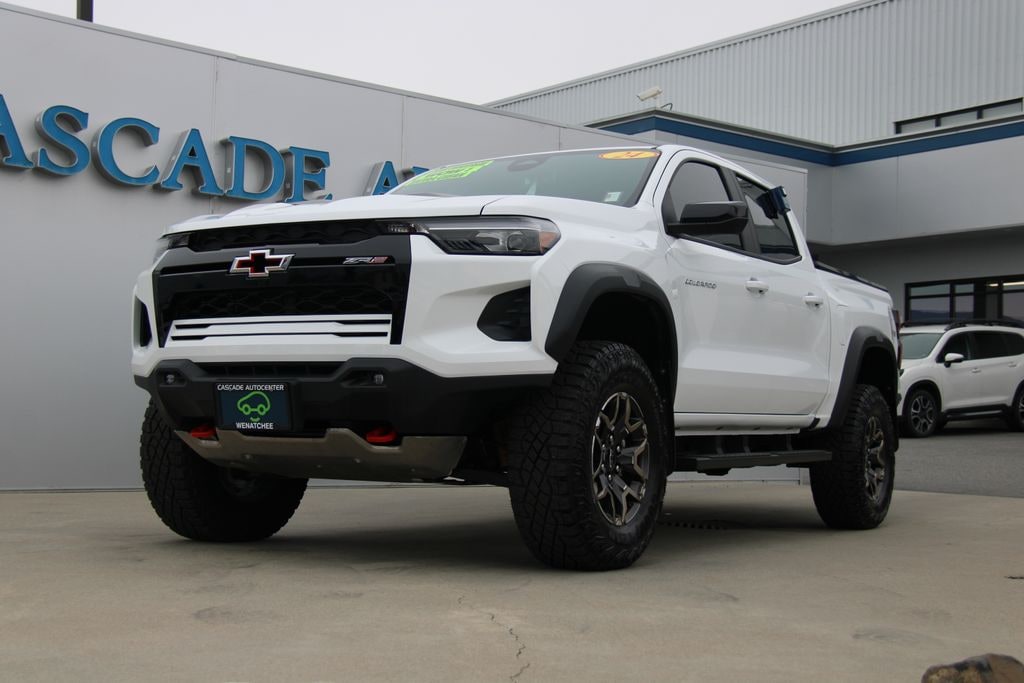 *One Owner*, Accident Free Carfax, Alloy Wheels, Audio Package, Backup Camera, Bi Xenon Headlamp Package, Bluetooth, Cargo Package, Climate Package, Heat Package, Light Package, Multimedia Package, Navigation System, Off Road Package, Power Mirror Package, Power Package, Premium Audio Package, Premium Wheels, Rear Climate Package, Remote Start, Safety Package, Security Package, Technology Package, Tow Package, Colorado ZR2, 4D Crew Cab, 2.7L I4 Turbocharged DOHC 16V LEV3-ULEV50 310hp, 8-Speed Automatic, 4WD, Summit White, Jet Black/Artemis Cloth, 1st & 2nd Row All-Weather Floor Liner (LPO), 3.42 Rear Axle Ratio, 4-Way Manual Passenger Seat Adjuster, 4-Wheel Disc Brakes, 6 Speakers, 6-Speaker Audio System Feature, 8-Way Power Driver Seat Adjuster, ABS brakes, Air Conditioning, AM/FM radio: SiriusXM, Apple CarPlay/Android Auto, Auto High-beam Headlights, Auto-dimming Rear-View mirror, Automatic Emergency Braking, Automatic temperature control, Blind Zone Steering Assist w/Trailering, Bose Premium 7-Speaker Audio System Feature, Brake assist, Chevy Safety Assist, Cloth/Evotex Seat Trim, Compass, Delay-off headlights, Driver door bin, Driver vanity mirror, Dual front impact airbags, Dual front side impact airbags, Electronic Automatic Cruise Control, Electronic Stability Control, Engine Block Heater, Following Distance Indicator, Forward Collision Alert, Front anti-roll bar, Front Bucket Seats, Front Center Armrest, Front dual zone A/C, Front fog lights, Front Passenger Seatback Map Pocket, Front Pedestrian & Bicyclist Braking, Front reading lights, Front wheel independent suspension, Heated door mirrors, Heated Driver & Front Passenger Seats, Heated front seats, Illuminated entry, IntelliBeam Automatic High Beam On/Off, Lane Keep Assist w/Lane Departure Warning, Low tire pressure warning, Navigation System, Occupant sensing airbag, Outside temperature display, Overhead airbag, Overhead console, Panic alarm, Passenger door bin, Passenger vanity mirror, Power door mirrors, Power Driver Lumbar Control Seat Adjuster, Power driver seat, Power steering, Power windows, Preferred Equipment Group 4ZR, Radio data system, Radio: 11.3" Diagonal Advanced Color LCD Display, Rear Cross Traffic Braking, Rear Park Assist, Rear reading lights, Rear step bumper, Rear window defroster, Rear-Window Electric Defogger, Remote keyless entry, Safety Package, Security system, SiriusXM Radio, Speed control, Speed-sensing steering, Split folding rear seat, Steering Wheel Mounted Audio Controls, Steering wheel mounted audio controls, Tachometer, Telescoping steering wheel, Tilt steering wheel, Traction control, Trip computer, Variably intermittent wipers, Wheels: 17" x 8" Graphite & Oxide Gold Aluminum, Wireless Phone Projection, ZR2 Off-Road Package.