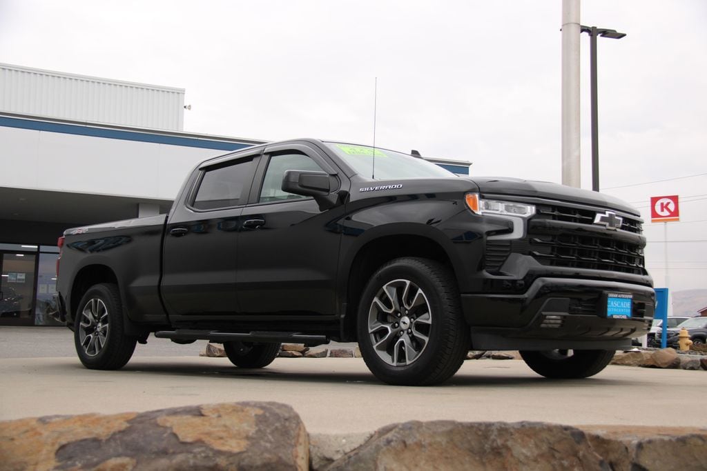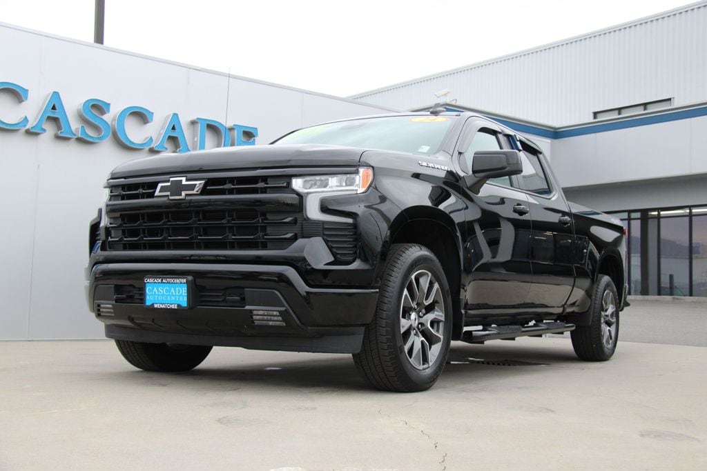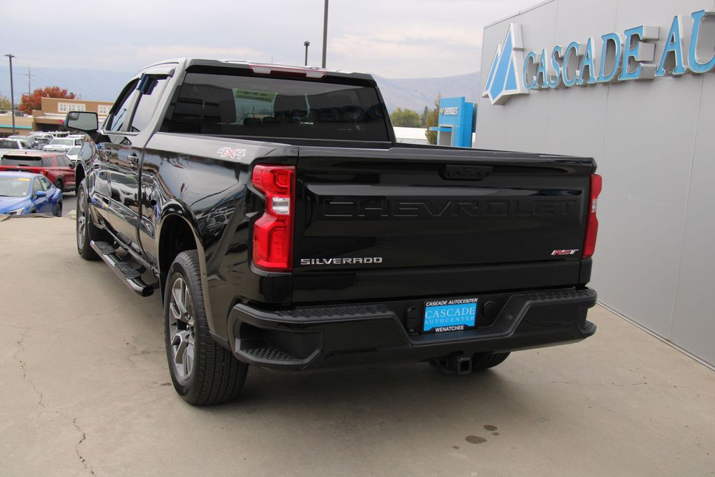 *One Owner*, Accident Free Carfax, Alloy Wheels, Audio Package, Backup Camera, Bi Xenon Headlamp Package, Bluetooth, Cargo Package, Climate Package, Heat Package, Heavy Duty Trailer Package, Light Package, Multimedia Package, Navigation System, Off Road Package, Performance Handling Package, Power Mirror Package, Power Package, Premium Audio Package, Premium Wheels, Rear Climate Package, Remote Start, Safety Package, Security Package, Technology Package, Tow Package, Wood Trim Package, Silverado 1500 RST, 4D Crew Cab, EcoTec3 5.3L V8, 10-Speed Automatic, 4WD, Black, Jet Black w/Perforated Leather Seat Trim, 10-Way Power Driver Seat w/Lumbar, 12.3" Multicolor Reconfigurable Digital Display, 120-Volt Bed Mounted Power Outlet, 120-Volt Interior Power Outlet, 220 Amp Alternator, 4-Wheel Disc Brakes, 40/20/40 Front Split-Bench Seat, 6 Speakers, 6-Speaker Audio System, ABS brakes, Air Conditioning, All-Star Edition, AM/FM radio: SiriusXM with 360L, Auto High-beam Headlights, Auto-Locking Rear Differential, Automatic Emergency Braking, Automatic temperature control, Bluetooth® For Phone, Brake assist, Bumpers: body-color, Chevrolet Connected Access Capable, Cloth Seat Trim, Color-Keyed Carpeting Floor Covering, Compass, Convenience Package, Deep-Tinted Glass, Delay-off headlights, Driver door bin, Driver vanity mirror, Dual front impact airbags, Dual Rear USB Ports (Charge Only), Dual-Zone Automatic Climate Control, Electric Rear-Window Defogger, Electrical Steering Column Lock, Electronic Cruise Control, Electronic Stability Control, EZ Lift Power Lock & Release Tailgate, Following Distance Indicator, Forward Collision Alert, Front anti-roll bar, Front Center Armrest w/Storage, Front dual zone A/C, Front fog lights, Front Frame-Mounted Black Recovery Hooks, Front LED Fog Lamps, Front Pedestrian Braking, Front reading lights, Front Rubberized Vinyl Floor Mats, Front wheel independent suspension, Fully automatic headlights, HD Rear Vision Camera, Heated door mirrors, Heated Driver & Front Outboard Passenger Seats, Heated front seats, Heated Power-Adjustable Outside Mirrors, Heated Steering Wheel, Heated steering wheel, High Gloss Black Mirror Caps, Hitch Guidance, Illuminated entry, Inside Rear-View Mirror w/Tilt, IntelliBeam Automatic High Beam On/Off, Keyless Open & Start, Lane Keep Assist w/Lane Departure Warning, LED Cargo Area Lighting, Low tire pressure warning, Navigation System, Occupant sensing airbag, OnStar & Chevrolet Connected Services Capable, Outside temperature display, Overhead airbag, Overhead console, Panic alarm, Passenger door bin, Passenger vanity mirror, Power door mirrors, Power driver seat, Power Front Windows w/Driver Express Up/Down, Power Front Windows w/Passenger Express Down, Power Rear Windows w/Express Down, Power steering, Power windows, Preferred Equipment Group 1SP, Premium audio system: Chevrolet Infotainment 3 Premium, Radio data system, Radio: Chevrolet Infotainment 3 Premium System, R