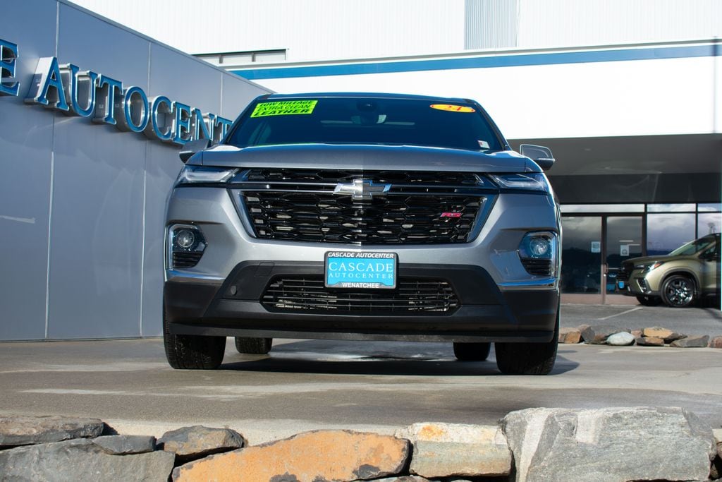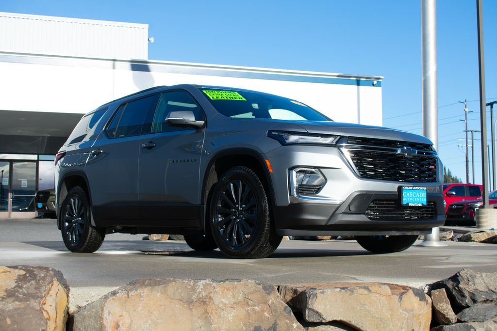 *One Owner*, Accident Free Carfax, Alloy Wheels, Audio Package, Backup Camera, Bi Xenon Headlamp Package, Bluetooth, Bose High End Sound Package, Cargo Package, Climate Package, Leather Seats, Multimedia Package, Navigation System, Performance Handling Package, Power Mirror Package, Power Package, Premium Audio Package, Premium Wheels, Rear Climate Package, Remote Start, Safety Package, Security Package, Sunroof/Moonroof, Technology Package, Traverse Limited RS, 4D Sport Utility, 3.6L V6 SIDI VVT, 9-Speed Automatic, AWD, Sterling Gray Metallic, Jet Black w/Leather-Appointed Seat Trim, 10 Speakers, 3.49 Axle Ratio, 3rd row seats: split-bench, 4-Wheel Disc Brakes, 6-Way Power Front Passenger Seat, 8-Way Power Driver Seat Adjuster, ABS brakes, Air Conditioning, AM/FM radio: SiriusXM with 360L, Apple CarPlay/Android Auto, Auto High-beam Headlights, Auto-dimming Rear-View mirror, Automatic temperature control, Bose Premium 10-Speaker Audio System Feature, Brake assist, Bumpers: body-color, Compass, Delay-off headlights, Driver door bin, Driver vanity mirror, Dual front impact airbags, Dual front side impact airbags, Dual SkyScape 2-Panel Power Sunroof, Electronic Stability Control, Emergency communication system, Exterior Parking Camera Rear, Four wheel independent suspension, Front anti-roll bar, Front Bucket Seats, Front Center Armrest, Front dual zone A/C, Front Passenger 2-Way Power Lumbar, Front reading lights, Fully automatic headlights, Garage door transmitter, Heated door mirrors, Heated Driver & Front Passenger Seats, Heated front seats, Heated steering wheel, Illuminated entry, Leather steering wheel, Low tire pressure warning, Navigation System, Occupant sensing airbag, Outside temperature display, Overhead airbag, Overhead console, Panic alarm, Passenger door bin, Passenger vanity mirror, Perforated Leather-Appointed Seat Trim, Power door mirrors, Power Driver Lumbar Control, Power driver seat, Power Liftgate, Power passenger seat, Power steering, Power windows, Premium audio system: Chevrolet Infotainment 3 Plus, Radio data system, Radio: Chevrolet Infotainment 3 Plus System w/Navi, Rear air conditioning, Rear anti-roll bar, Rear reading lights, Rear window defroster, Rear window wiper, Remote keyless entry, Security system, SiriusXM w/360L, Speed control, Speed-sensing steering, Spoiler, Steering wheel mounted audio controls, Tachometer, Telescoping steering wheel, Tilt steering wheel, Traction control, Trip computer, Turn signal indicator mirrors, Variably intermittent wipers, Voltmeter, Wheels: 20" Dark Aluminum.