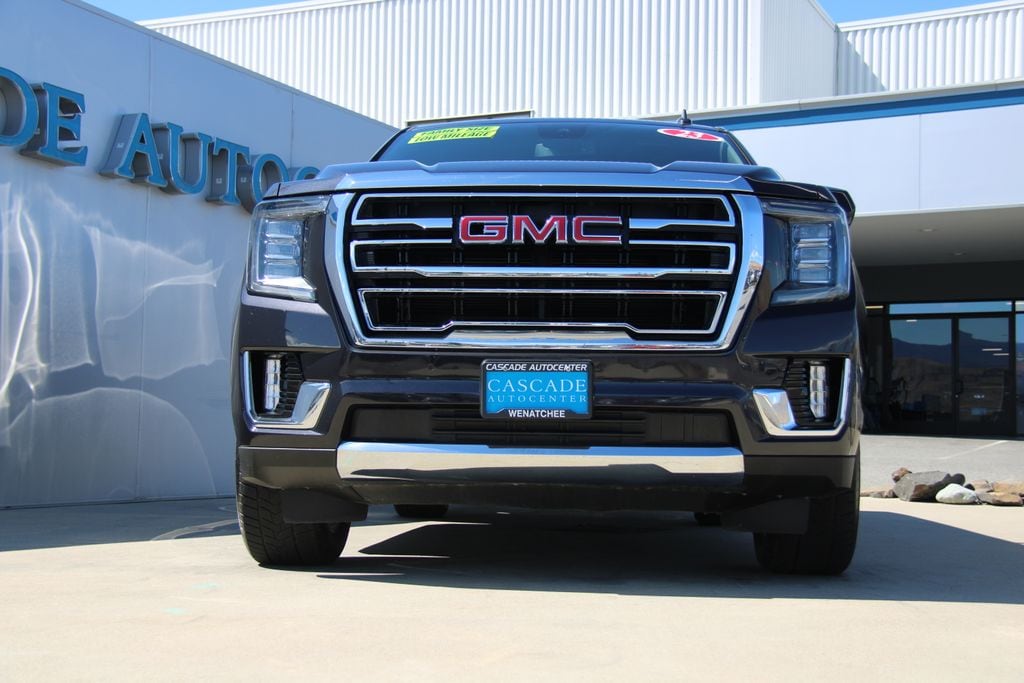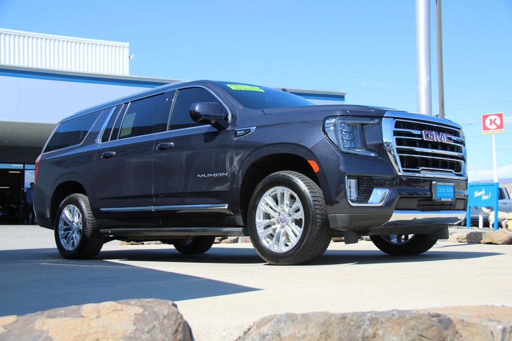 *One Owner*, Accident Free Carfax, Alloy Wheels, Audio Package, Backup Camera, Bi Xenon Headlamp Package, Bluetooth, Bose High End Sound Package, Cargo Package, Climate Package, Heat Package, Heavy Duty Trailer Package, Leather Seats, Memory Package, Multimedia Package, Navigation System, Off Road Package, Performance Handling Package, Power Mirror Package, Power Package, Premium Audio Package, Premium Wheels, Rear Climate Package, Remote Start, Safety Package, Security Package, SLT Package, Sunroof/Moonroof, Tow Package, Wood Trim Package, Yukon XL SLT, 4D Sport Utility, EcoTec3 5.3L V8, 10-Speed Automatic with Overdrive, 4WD, Titanium Rush Metallic, Jet Black w/Perforated Leather Seating Surfaces, 2 Presets For Power Driver Seat, 3.23 Rear Axle Ratio, 3rd row seats: split-bench, 4-Wheel Disc Brakes, 9 Speakers, ABS brakes, Air Conditioning, AM/FM radio: SiriusXM with 360L, AM/FM Stereo, Apple CarPlay/Android Auto, Auto High-beam Headlights, Auto-dimming Rear-View mirror, Automatic Emergency Braking, Automatic temperature control, Bodyside moldings, Bose 9-Speaker Stereo Audio System Feature, Brake assist, Bright Chrome Bodyside Moldings, Bright Front & Rear Door Sill Plates, Bumpers: body-color, Chrome Door Handles w/Body-Color Strip, Compass, Delay-off headlights, Driver door bin, Driver vanity mirror, Dual front impact airbags, Dual front side impact airbags, Dual-Pane Panoramic Power Sunroof, Electronic Stability Control, Emergency communication system: OnStar and GMC connected services capable, Following Distance Indicator, Forward Collision Alert, Four wheel independent suspension, Front & Rear Park Assist, Front anti-roll bar, Front Bucket Seats, Front Center Armrest, Front dual zone A/C, Front fog lights, Front Pedestrian Braking, Front reading lights, Fully automatic headlights, Garage door transmitter, Hands-Free Power Programmable Rear Liftgate, Heated & Ventilated Driver & Front Passenger Seats, Heated door mirrors, Heated Driver & Front Passenger Seats, Heated front seats, Illuminated entry, Inside Rear-View Auto-Dimming Mirror, IntelliBeam Automatic High Beam On/Off, Lane Change Alert w/Side Blind Zone Alert, Lane Keep Assist w/Lane Departure Warning, Low tire pressure warning, Memory seat, Navigation System, Occupant sensing airbag, Outside temperature display, Overhead airbag, Overhead console, Panic alarm, Passenger door bin, Passenger vanity mirror, Perforated Leather-Appointed Seating, Power door mirrors, Power driver seat, Power Liftgate, Power passenger seat, Power Release 2nd Row 60/40 Split-Folding Bench Seat, Power steering, Power windows, Preferred Equipment Group 4SA, Premium Smooth Ride Suspension, Rain sensing wipers, Rear air conditioning, Rear anti-roll bar, Rear Cross Traffic Alert, Rear reading lights, Rear seat center armrest, Rear window defroster, Rear window wiper, Remote keyless entry, Roof rack: rails only, Safety Alert Seat, Security system, SiriusXM w/360L, Speed control, Speed-sensing s