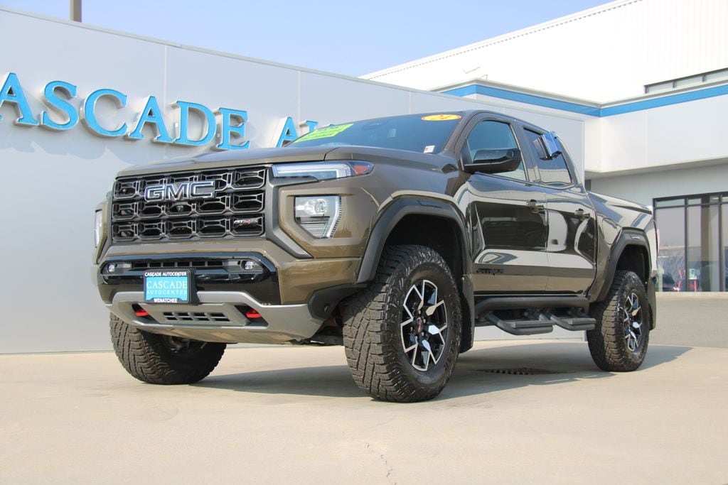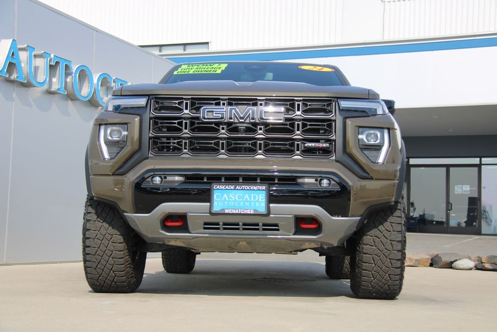 *One Owner*, Accident Free Carfax, Alloy Wheels, Audio Package, Backup Camera, Bi Xenon Headlamp Package, Bluetooth, Bose High End Sound Package, Cargo Package, Climate Package, Heat Package, Heavy Duty Trailer Package, Leather Seats, Multimedia Package, Navigation System, Off Road Package, Performance Handling Package, Power Mirror Package, Power Package, Premium Audio Package, Premium Wheels, Rear Climate Package, Remote Start, Safety Package, Security Package, Sunroof/Moonroof, Technology Package, Tow Package, Wood Trim Package, Canyon AT4X, 4D Crew Cab, 2.7L I4 Turbocharged DOHC 16V LEV3-SULEV30 310hp, 8-Speed Automatic, 4WD, Deep Bronze Metallic, Obsidian Rush Leather, 120-Volt Bed Mounted Power Outlet, 2 1st Row USB Charge/Data Ports, 2 Rear USB Ports in Center Console (Charge-Only), 220 Amps Alternator, 3.42 Rear Axle Ratio, 4-Wheel Disc Brakes, 6-Way Power Passenger Seat Adjuster, 7 Speakers, 8-Way Power Driver Seat Adjuster, ABS brakes, Adaptive Cruise Control, Air Conditioning, Alloy wheels, AM/FM radio, Apple CarPlay/Android Auto, Auto High-beam Headlights, Auto-dimming Rear-View mirror, Automatic Emergency Braking, Automatic Stop/Start, Automatic temperature control, Brake assist, Bumpers: body-color, Canyon Pro Safety, Compass, Delay-off headlights, Driver & Front Passenger Illuminated Visors, Driver & Front Passenger Ventilated Seats, Driver door bin, Driver Memory, Driver Mode Selector, Driver Seatback Map Pocket, Driver vanity mirror, Driver-Selectable Full-Locking Front Differential, Driver-Selectable Full-Locking Rear Differential, Dual front impact airbags, Dual front side impact airbags, Dual-Zone Automatic Air Conditioning, Electronic Stability Control, Engine Block Heater, EZ-Lift & Lower Tailgate, Following Distance Indicator, Forward Collision Alert, Front anti-roll bar, Front Bucket Seats, Front Center Armrest, Front dual zone A/C, Front fog lights, Front LED Fog Lamps, Front Passenger Seatback Map Pocket, Front Pedestrian & Bicyclist Braking, Front reading lights, Front wheel independent suspension, HD Surround Vision, Heads-Up Display, Heated door mirrors, Heated Driver & Front Passenger Seats, Heated front seats, Heated Power-Adjustable Outside Mirrors, Heated Steering Wheel, Heated steering wheel, Illuminated entry, Inside Rear-View Auto-Dimming Mirror, Integrated Trailer Brake Controller, IntelliBeam Automatic High Beam On/Off, Interior Overhead Courtesy Light w/Dual Reading Lamp, Lane Keep Assist w/Lane Departure Warning, Low tire pressure warning, Manual Rear-Sliding Window, Memory seat, Multicolor 6.3" Diagonal Head-Up Display, MultiStow Tailgate, Navigation system: OnStar, Occupant sensing airbag, Outside temperature display, Overhead airbag, Overhead console, Panic alarm, Passenger door bin, Passenger vanity mirror, Perforated Leather-Appointed Seat Trim, Power door mirrors, Power Driver Lumbar Control Seat Adjuster, Power driver seat, Power Inner Sliding Glass Sunroof w/Manual Shade, Power Pa
