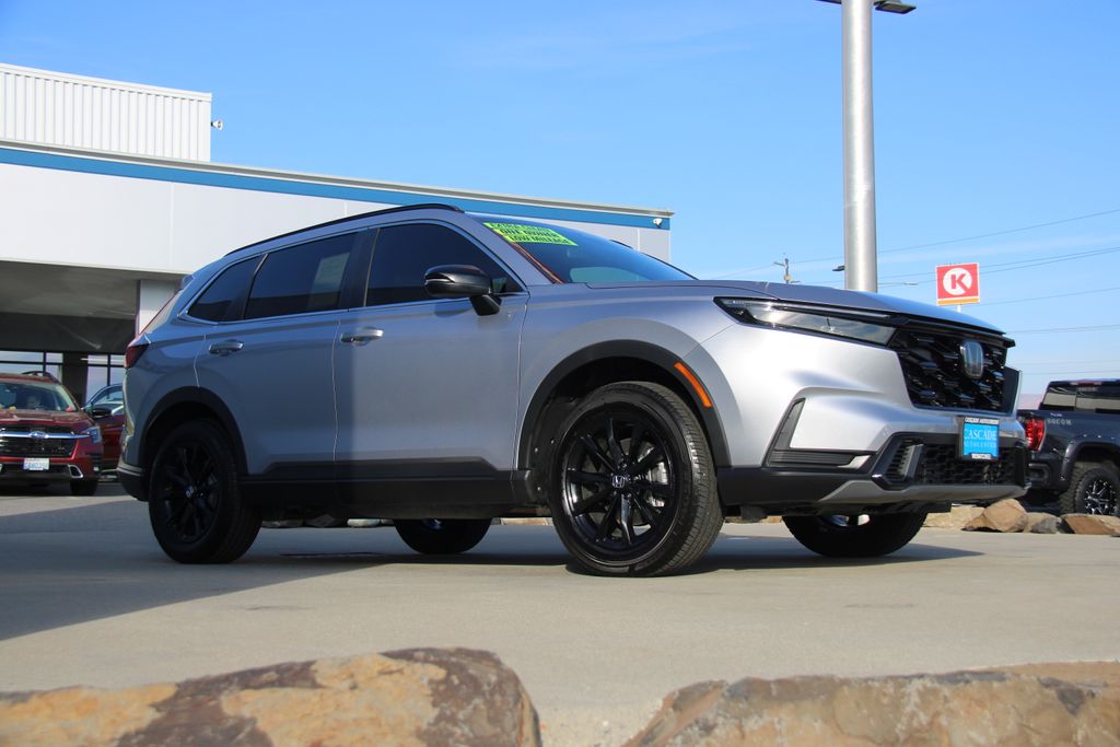 Accident Free Carfax, Alloy Wheels, Audio Package, Backup Camera, Bi Xenon Headlamp Package, Bluetooth, Cargo Package, Climate Package, Heat Package, Light Package, Multimedia Package, Power Mirror Package, Power Package, Premium Audio Package, Premium Wheels, Rear Climate Package, Safety Package, Security Package, CR-V Hybrid Sport, 4D Sport Utility, 2.0L I4 DOHC 16V, eCVT, AWD, Solar Silver Metallic, Black w/Cloth Seat Trim, 4-Wheel Disc Brakes, 6 Speakers, ABS brakes, Adaptive Cruise Control: Adaptive Cruise Control (ACC) with Low-Speed Follow, Air Conditioning, Alloy wheels, Apple CarPlay/Android Auto, Auto High-beam Headlights, Automatic temperature control, Blind Spot Information (BSI) System warning, Brake assist, Bumpers: body-color, Cloth Seat Trim, Compass, Delay-off headlights, Driver door bin, Driver vanity mirror, Dual front impact airbags, Dual front side impact airbags, Electronic Stability Control, Exterior Parking Camera Rear, Four wheel independent suspension, Front anti-roll bar, Front Bucket Seats, Front Center Armrest, Front dual zone A/C, Front reading lights, Fully automatic headlights, Heated door mirrors, Heated Front Bucket Seats, Heated front seats, Illuminated entry, Knee airbag, Leather Shift Knob, Leather steering wheel, Low tire pressure warning, Occupant sensing airbag, Outside temperature display, Overhead airbag, Overhead console, Panic alarm, Passenger door bin, Passenger vanity mirror, Power door mirrors, Power driver seat, Power moonroof, Power steering, Power windows, Radio data system, Radio: 240-Watt AM/FM Audio System, Rear anti-roll bar, Rear reading lights, Rear seat center armrest, Rear side impact airbag, Rear window defroster, Rear window wiper, Remote keyless entry, Security system, Speed control, Speed-sensing steering, Speed-Sensitive Wipers, Split folding rear seat, Spoiler, Steering wheel mounted audio controls, Telescoping steering wheel, Tilt steering wheel, Traction control, Trip computer, Turn signal indicator mirrors, Variably intermittent wipers, Wheels: 18" Berlina Black Alloy.