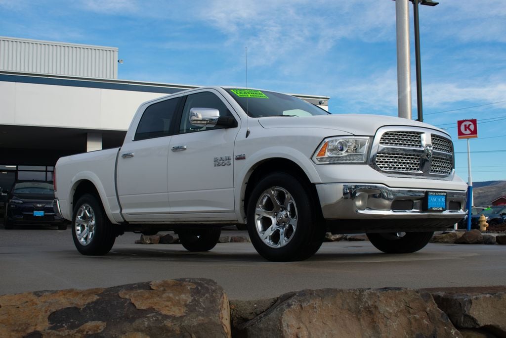 Accident Free Carfax, Alloy Wheels, Audio Package, Backup Camera, Bi Xenon Headlamp Package, Bluetooth, Cargo Package, Heat Package, Heavy Duty Trailer Package, Leather Seats, Memory Package, Multimedia Package, Navigation System, Off Road Package, Performance Handling Package, Power Mirror Package, Power Package, Premium Audio Package, Premium Wheels, Rear Climate Package, Remote Start, Safety Package, Security Package, Tow Package, Wood Trim Package, 1500 Laramie, 4D Crew Cab, HEMI 5.7L V8 Multi Displacement VVT, 8-Speed Automatic, 4WD, Bright White Clearcoat, Black Leather, 1-Yr SiriusXM Guardian Trial, 115V Auxiliary Power Outlet, 20" x 9" Chrome Clad Aluminum Wheels, 3.21 Rear Axle Ratio, 4-Wheel Disc Brakes, 6 Speakers, 8.4" Touchscreen Display, 9 Alpine Speakers w/Subwoofer (DISC), ABS brakes, Active Grille Shutters, Adjustable pedals, Air Conditioning, Alloy wheels, AM/FM radio: SiriusXM, Apple CarPlay, Apple CarPlay/Android Auto, Audio Jack Input for Mobile Devices, Audio memory, Auto-dimming door mirrors, Auto-dimming Rear-View mirror, Automatic temperature control, Brake assist, Bumpers: chrome, Center Hub, Compass, Delay-off headlights, Driver door bin, Driver vanity mirror, Dual front impact airbags, Dual front side impact airbags, Electronic Shift, Electronic Stability Control, Emergency communication system: SiriusXM Guardian, Folding Flat Load Floor Storage, Front anti-roll bar, Front Center Armrest w/Storage, Front dual zone A/C, Front fog lights, Front reading lights, Front wheel independent suspension, Fully automatic headlights, Garage door transmitter, Google Android Auto, GPS Antenna Input, HD Radio, Heated door mirrors, Heated Front Seats, Heated front seats, Heated steering wheel, High Back Seats, Illuminated entry, Integrated Voice Command w/Bluetooth, Leather steering wheel, Leather Trim 40/20/40 Bench Seat, Low tire pressure warning, Media Hub (2 USB, AUX), Memory seat, Occupant sensing airbag, Outside temperature display, Overhead airbag, Overhead console, Panic alarm, ParkView Rear Back-Up Camera, Passenger door bin, Passenger vanity mirror, Pedal memory, Power 10-Way Memory Driver & 6-Way Passenger Seats, Power door mirrors, Power driver seat, Power passenger seat, Power steering, Power windows, Quick Order Package 26H Laramie (DISC), Radio data system, Radio: Uconnect 4C w/8.4" Display, Rear 60/40 Split Folding Seat, Rear anti-roll bar, Rear seat center armrest, Rear step bumper, Remote keyless entry, Remote USB Port, Security system, SiriusXM Satellite Radio, Speed control, Split folding rear seat, Steering wheel mounted audio controls, Tachometer, Tilt steering wheel, Tip Start, Traction control, Trip computer, Turn signal indicator mirrors, USB Host Flip, Variably intermittent wipers, Ventilated Front Seats, Ventilated front seats, Voltmeter.