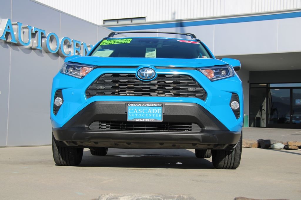 *One Owner*, Accident Free Carfax, Alloy Wheels, Audio Package, Backup Camera, Bi Xenon Headlamp Package, Bluetooth, Cargo Package, Climate Package, Light Package, Multimedia Package, Off Road Package, Performance Handling Package, Power Mirror Package, Power Package, Premium Audio Package, Premium Wheels, Rear Climate Package, Safety Package, Security Package, Wood Trim Package, XLE Package, RAV4 Hybrid XLE Premium, 4D Sport Utility, 2.5L 4-Cylinder, eCVT, AWD, Blue Flame, Ash w/SofTex Seat Trim, 3 Spoke Leather Steering Wheel, 4-Wheel Disc Brakes, 6 Speakers, ABS brakes, Air Conditioning, AM/FM radio: SiriusXM, AM/FM Stereo, Apple CarPlay/Android Auto, Auto High-beam Headlights, Automatic temperature control, Axle Ratio: TBD, Brake assist, Bumpers: body-color, Delay-off headlights, Driver door bin, Driver vanity mirror, Dual front impact airbags, Dual front side impact airbags, Electronic Stability Control, Emergency communication system: Safety Connect with 1-year trial, Exterior Parking Camera Rear, Four wheel independent suspension, Front anti-roll bar, Front Bucket Seats, Front Center Armrest, Front Door Smart Key System w/Push Button Start, Front dual zone A/C, Front fog lights, Front reading lights, Front Sport Seats, Fully automatic headlights, Heated door mirrors, Illuminated entry, Knee airbag, Lane Departure Warning System, Leather Shift Knob, Low tire pressure warning, Occupant sensing airbag, Outside temperature display, Overhead airbag, Overhead console, Panic alarm, Passenger door bin, Passenger vanity mirror, Power door mirrors, Power driver seat, Power Liftgate, Power moonroof, Power steering, Power windows, Radio data system, Rear anti-roll bar, Rear seat center armrest, Rear window defroster, Rear window wiper, Remote keyless entry, Roof rack: rails only, SofTex Seat Trim, Speed control, Speed-sensing steering, Split folding rear seat, Spoiler, Steering wheel mounted audio controls, Telescoping steering wheel, Tilt steering wheel, Traction control, Trip computer, Turn signal indicator mirrors, Variably intermittent wipers, Wheels: 18" x 7.0J 5-Spoke Sport Alloy.